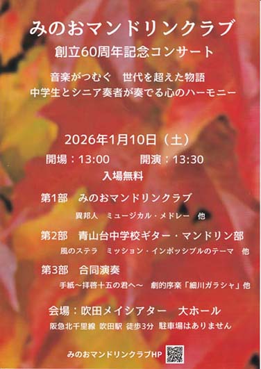 2026年1月10日(土) 創立60周年記念コンサートを吹田市文化会館